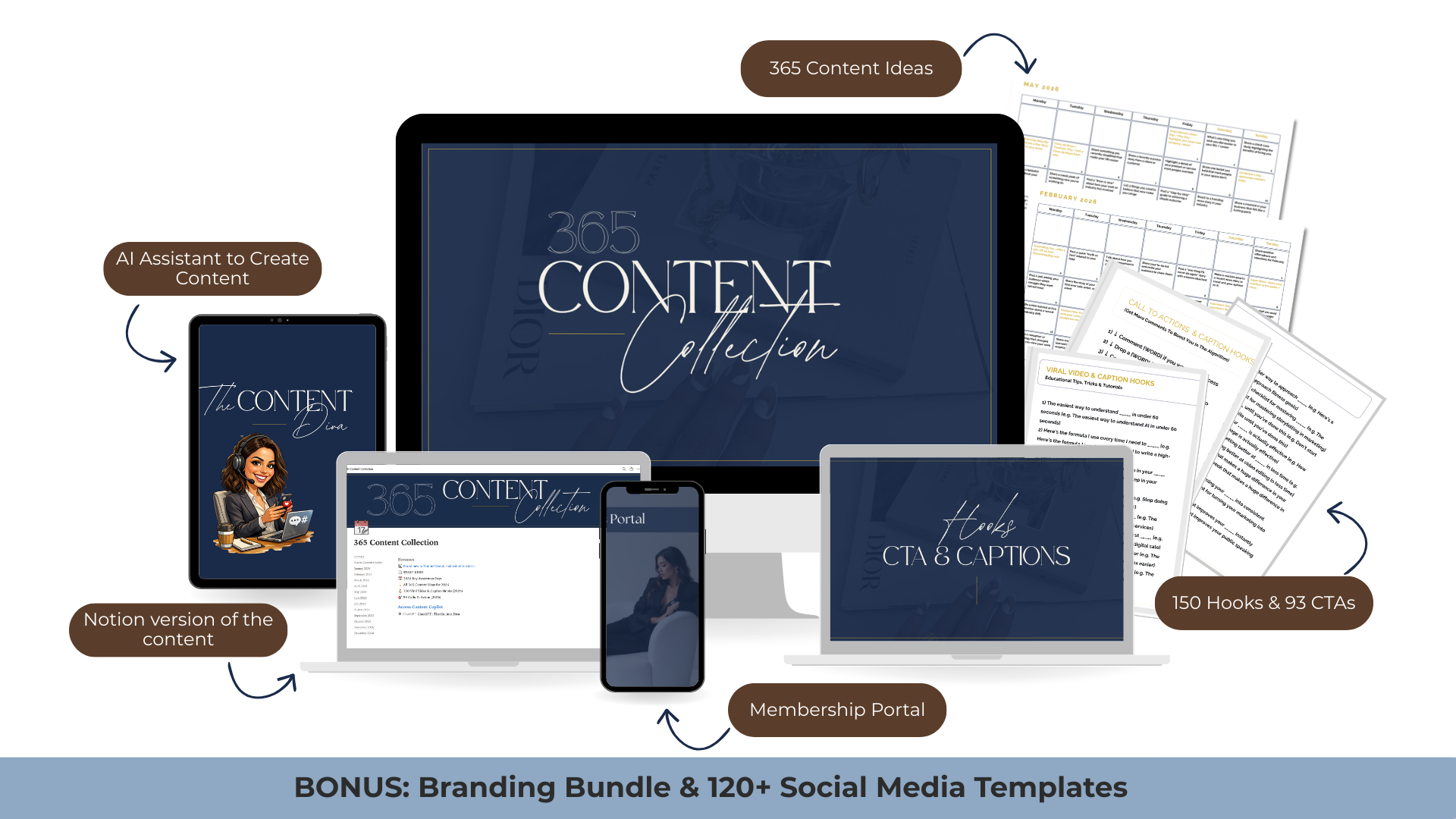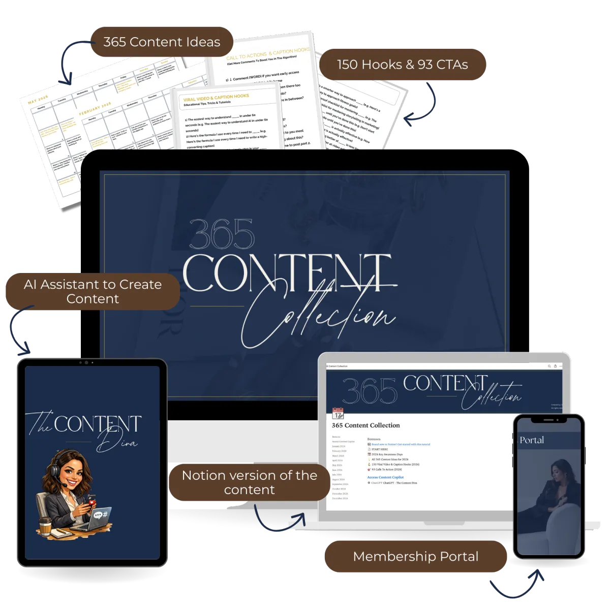 Stop staring at blank screens. Get 365 days of content ideas, viral hooks, strategic CTAs, and AI-powered customization—so you can show up consistently without the burnout.
