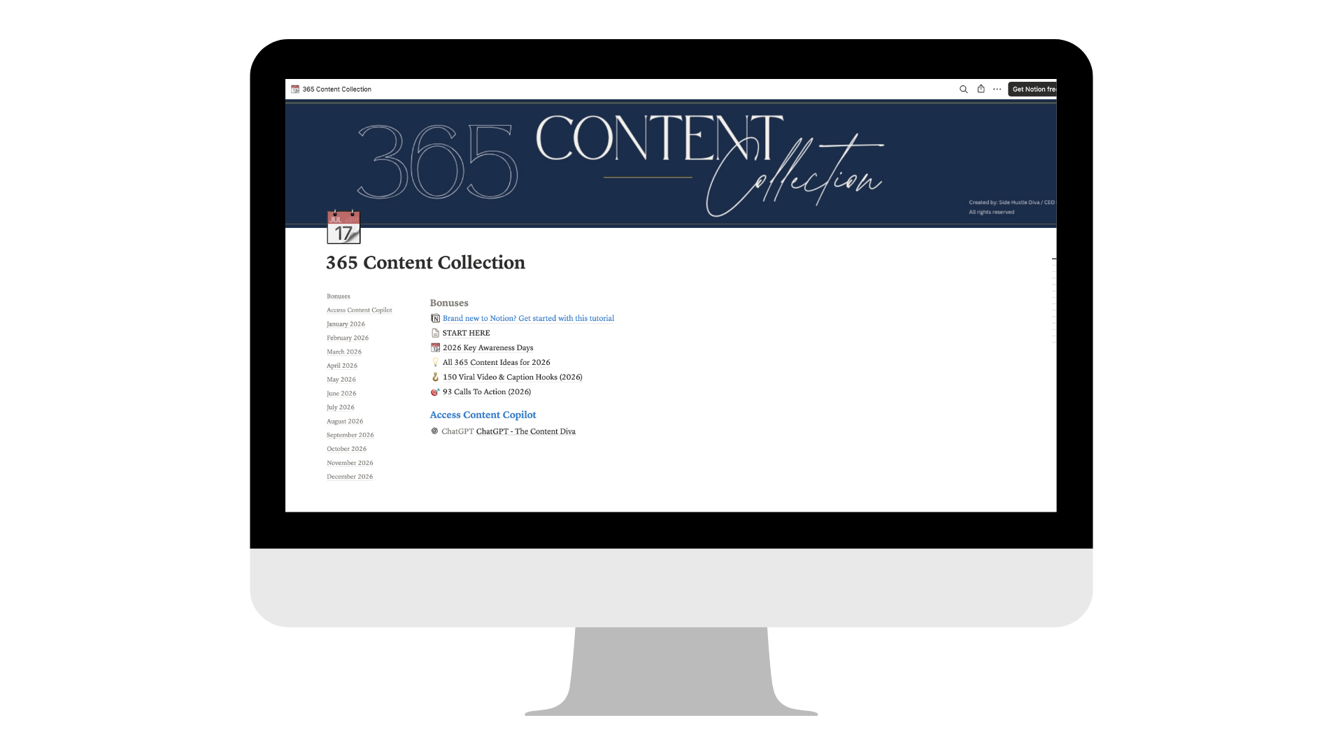 Access in Notion, Membership portal, and as PDF. Choose how you manage your calendar.